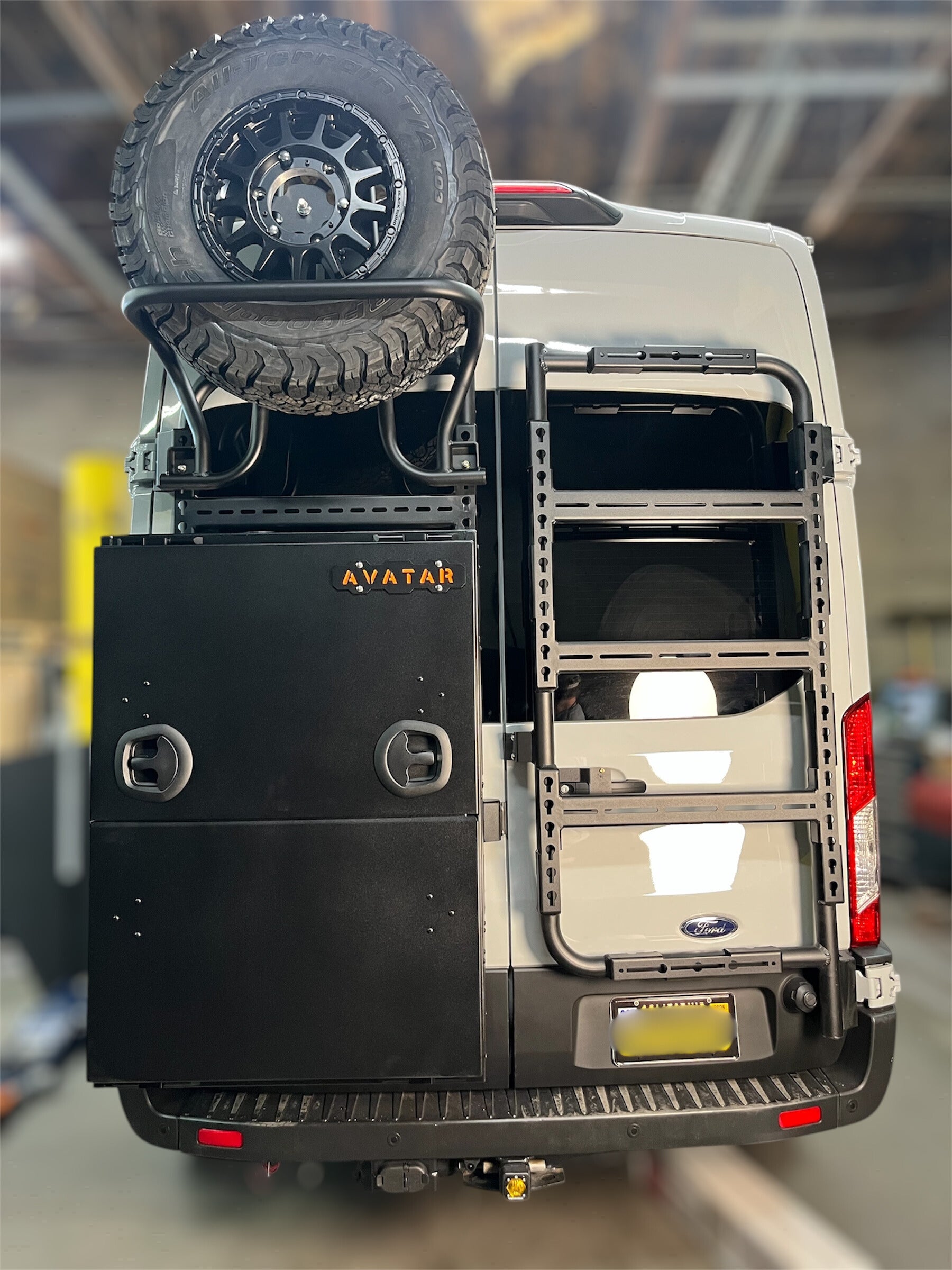 For van lifers, overlanders, and adventure seekers, storage space is everything! Don't just maximize the inside, maximize the outside! Enter the Massif Rear Door Carrier – a game-changer for assisting your van’s storage and functionality without sacrificing interior space. Whether you're hauling extra gear, a spare tire, or even a bike, this rugged, multi-use carrier has got you covered!
